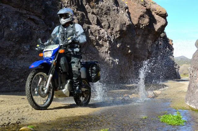 The DR needs a few things before its worthy of a long adventure. With its small tank you will be limited on your distance between stops. I suggest you purchase the IMS aftermarket tank. Investing in a proper skid plate would be wise since there is no factory plate on the DR. Suzuki offers a factory plate available HERE, or you can get a simple MSR plate available HERE. If you plan on carrying luggage and want a rack there are three really cool options: Factory Suzuki rack, Pro Moto Billet rack, or the Dirtracks version. If you chose not to install a rack you can use the Green Chile Adventure Gear kit since no rack is required.